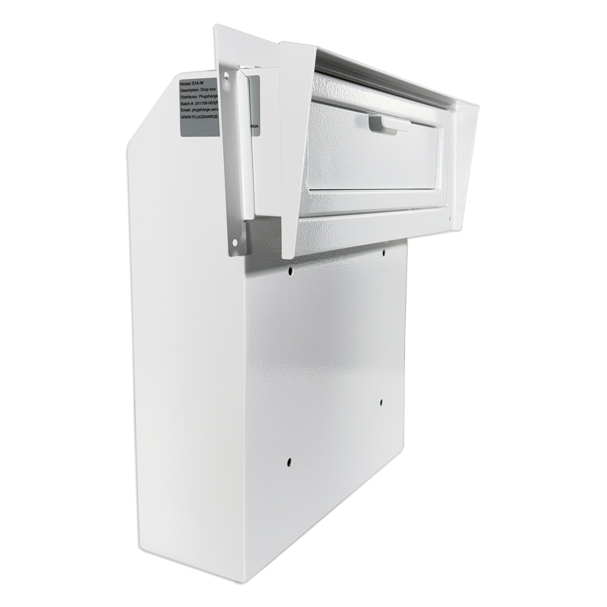 D1A-W - Locking Mailbox Drop Box with Rain Cover, Heavy-Duty Galvanized Steel, Door Mounted Secure Mailbox for Keys, Cash, Checks, Deposits & Letters – Safe Mail Drop Box for Home/Office, White
