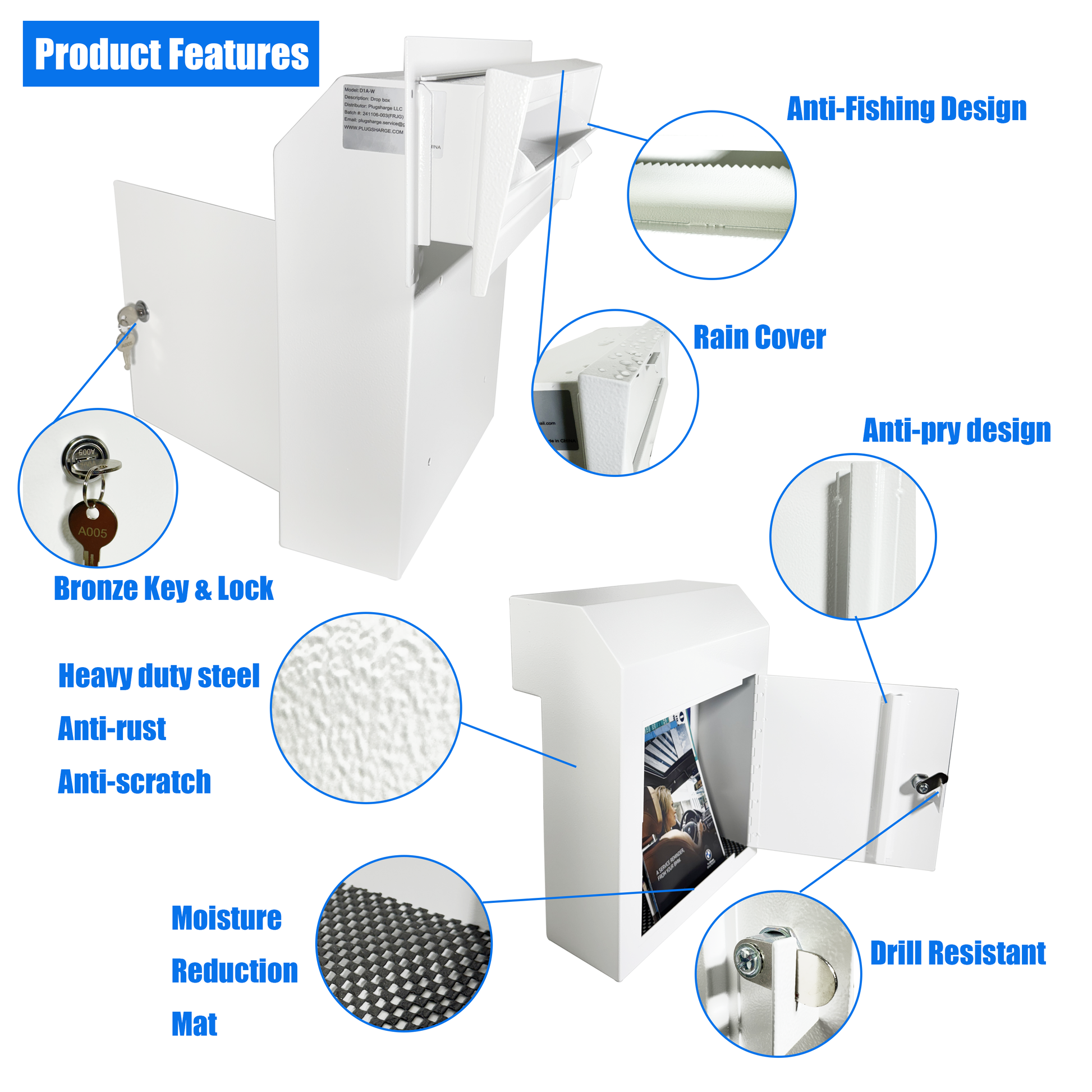- SECURE & ANTI-THEFT: Our deposit safe features a robust anti-fishing design, ensuring top-tier security. This slot-equipped dropbox safe is exclusively accessible using the designated key, and is impervious to forceful attempts at prying it open.