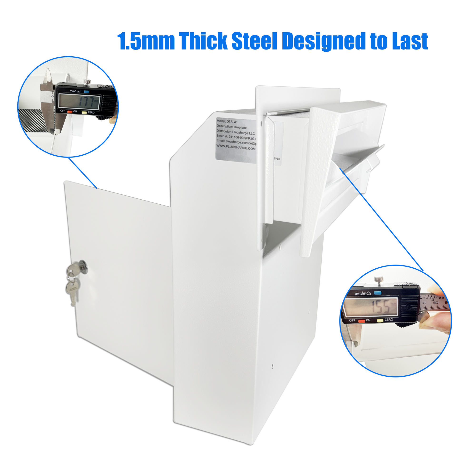 - UNIVERSAL DOOR FIT: Our lockable cash drop box is designed to effortlessly attach to wooden doors with a thickness of up to 1.75 inches, ensuring convenient access from both front and rear sides. All the necessary hardware is included for installation! (Please note: This secure drop box is intended for door mounting and is not suitable for wall installation.)