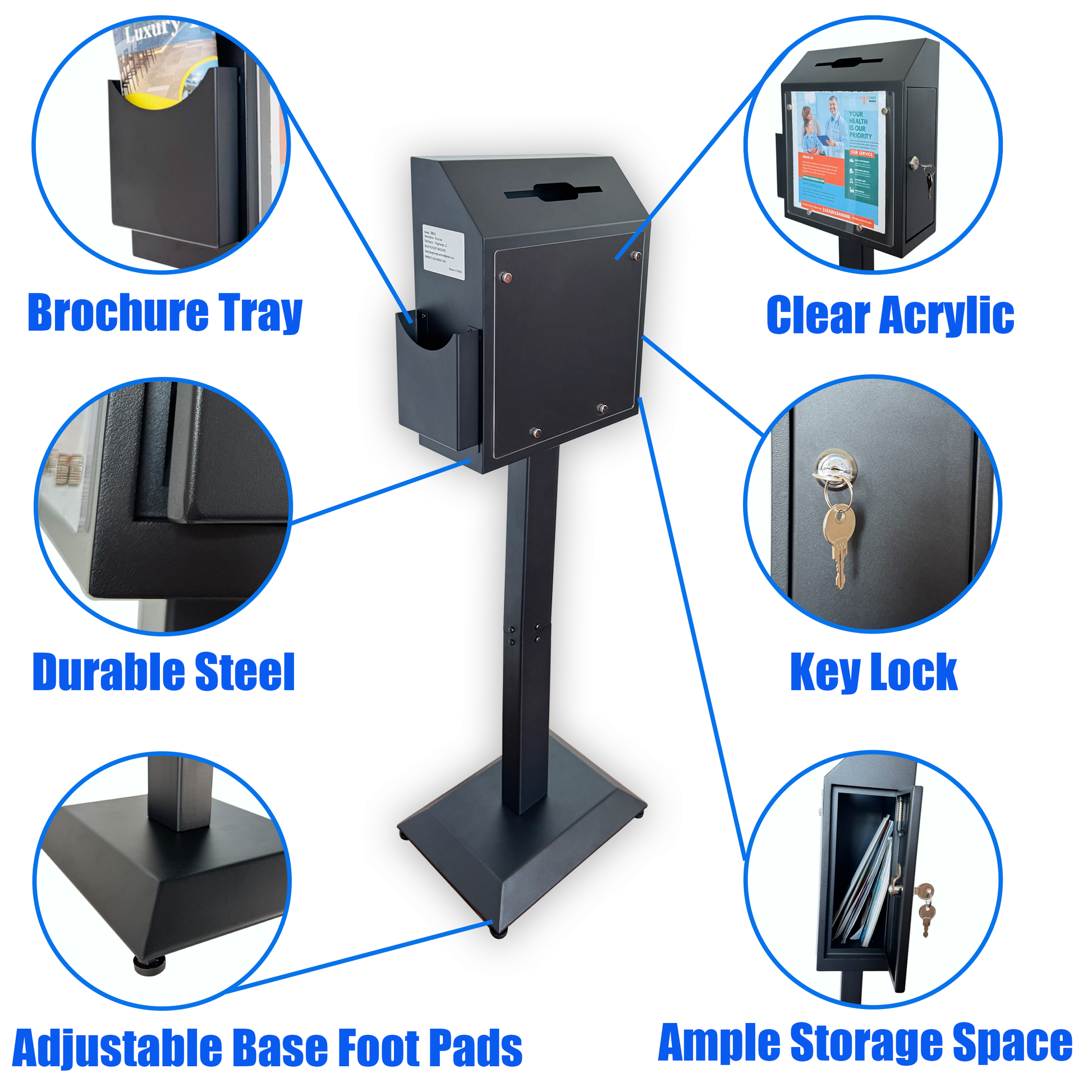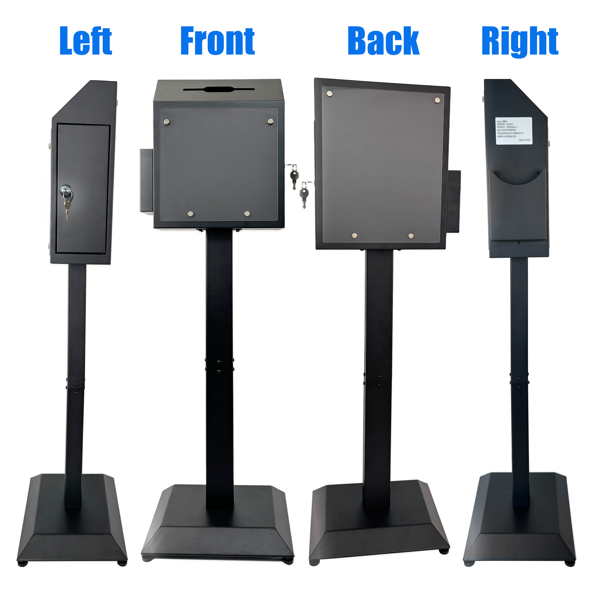 D6A-B - Suggestion Box with Stand, Floor Standing Offering Box, Metal Locking Ballot Collection Safe Box for Voting, Charity, Donation, Church, Election, Hospital Feedback, and Car Rental Key Return, Black