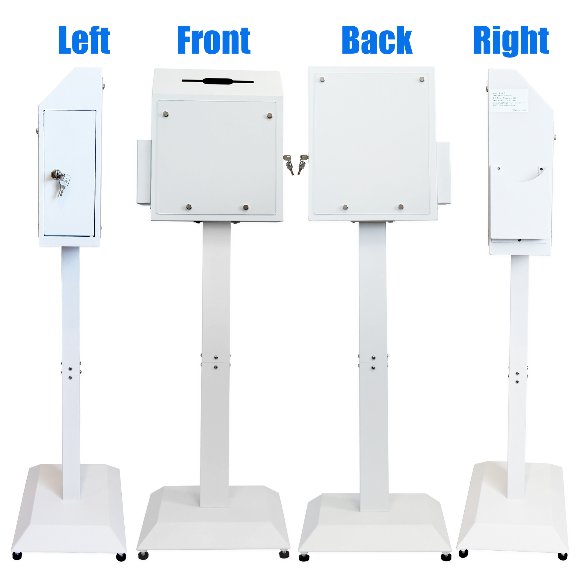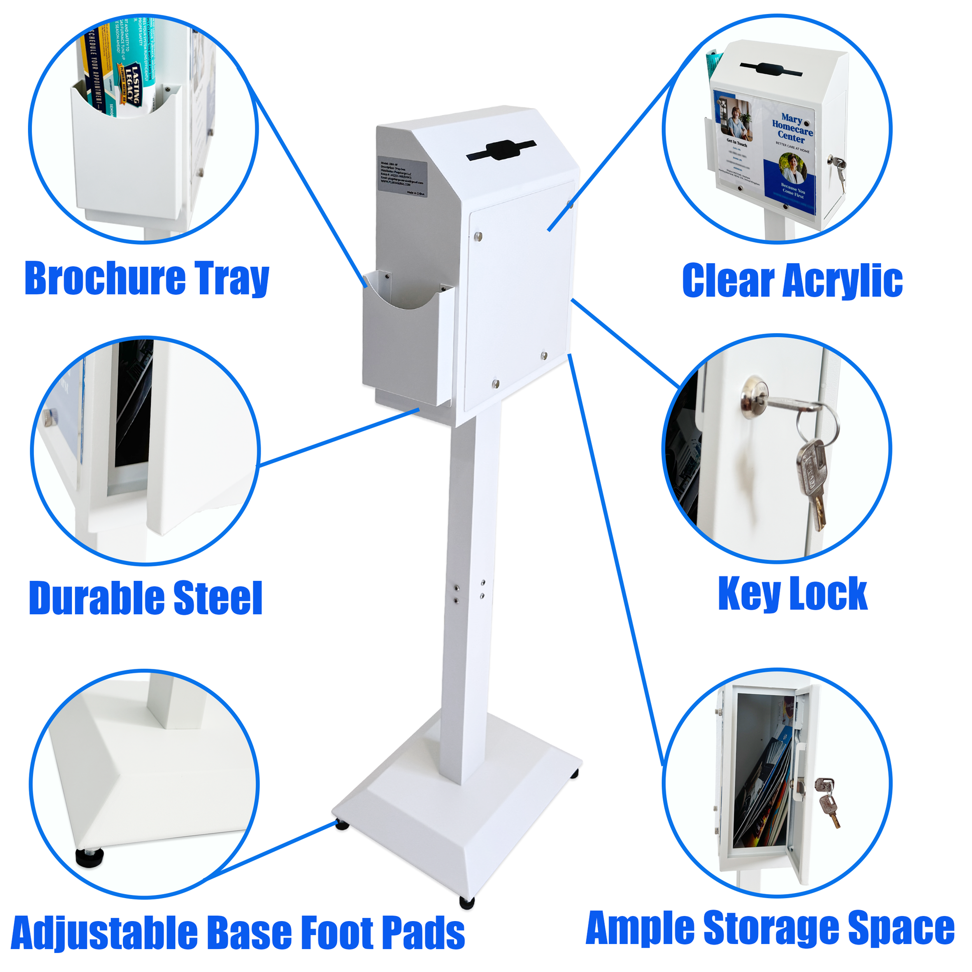 D6A-W - Suggestion Box with Stand, Floor Standing Offering Box, Metal Locking Ballot Collection Safe for Voting, Charity, Donation, Church, Election, Hospital Feedback, and Car Rental Key Return, White