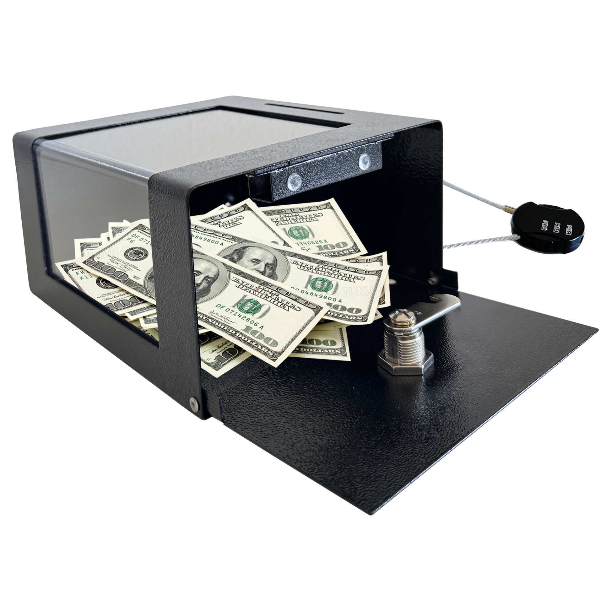 D7-B - Steel Locking Tip Box - Heavy-Duty Secure Tip Jar with Combination Cable Lock, Ideal for Taxi Tips, Donations, Suggestions, Business Cards, Cash, and More in Family Churches, Restaurants, and Events