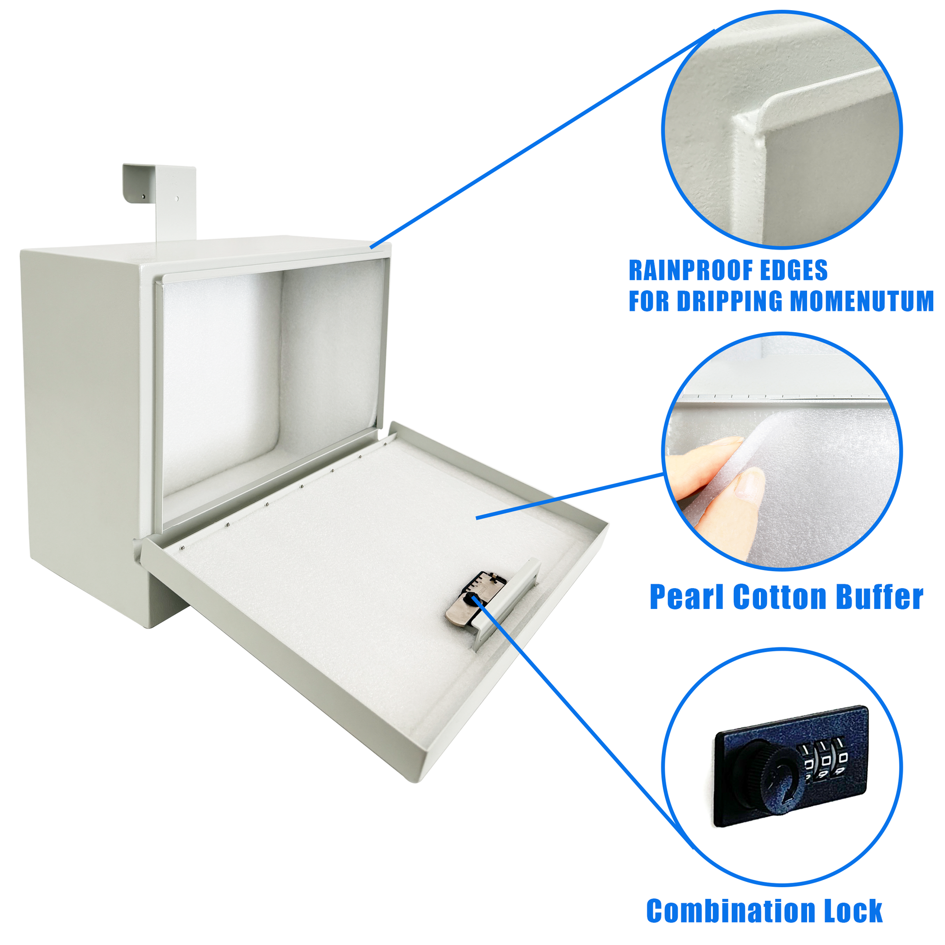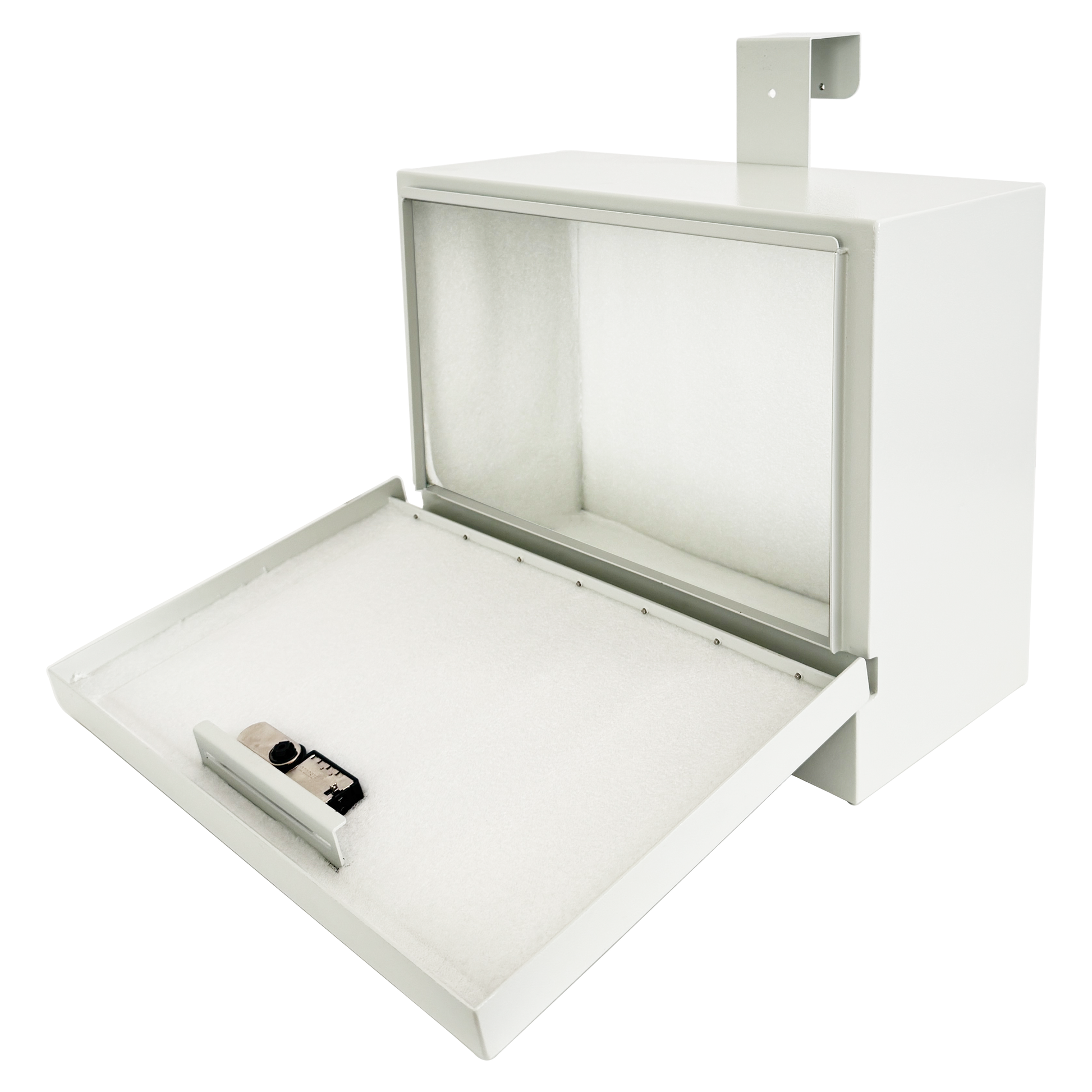 D9-G - Metal Specimen Drop Box, Medium, 14" W x 6.5" D x 11" H, Over-the-Door Hanging, with Combination Lock, Gray