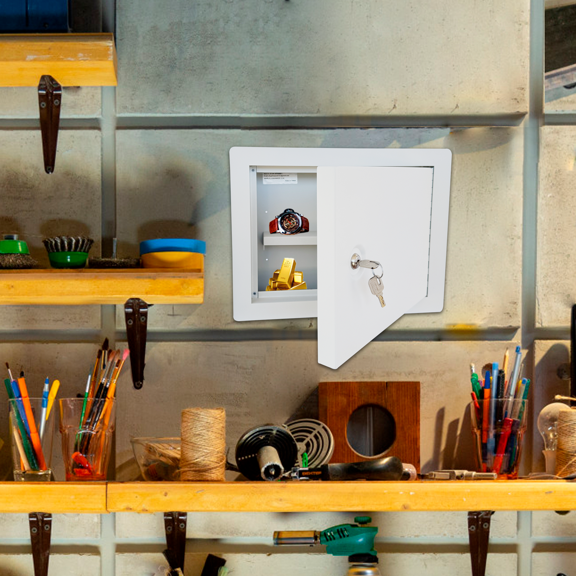 G1-W - In-Wall Safe with Key Lock – Heavy-Duty Steel Lockable Hidden Wall Compartment for Secure Storage, Wall Safe Box for Jewelry, Cash, and Documents – 15.75-Inch Exterior Width, White